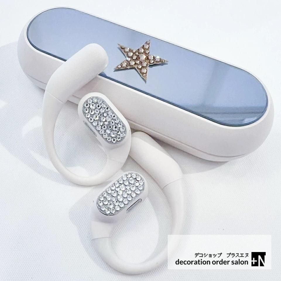 (nb) Audio オープンイヤー イヤホン 空気伝導 ワイヤレスイヤホン 耳をふさがない 軽量 耳掛け ながら聴き Bluetoothイヤホン 選べるイニシャル 選べるスワロフスキーカラー