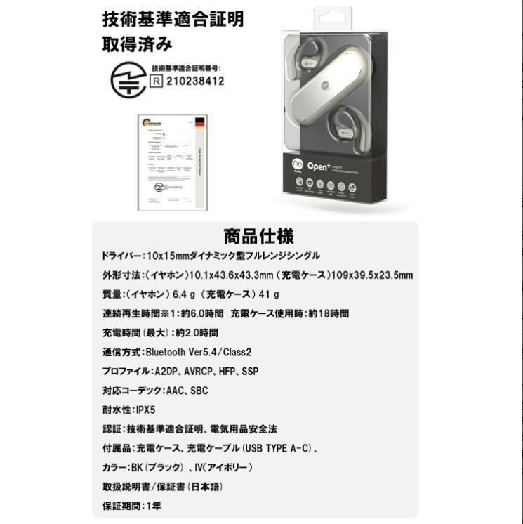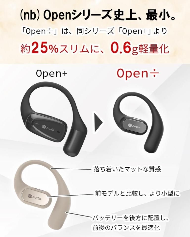 オープンイヤー イヤホン ワイヤレス 耳をふさがない 開放型 iPhone Android (nb) Audio Open÷ エヌビーオーディオ オープンディー おすすめ 軽量 6.4g 高音質 通話 ブルートゥース イヤフォン マイク機能付き 防水 Bluetooth 最大18時間再生
